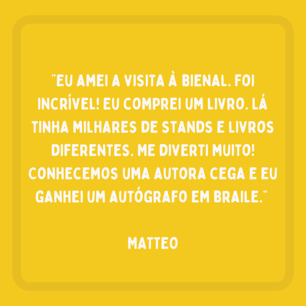 A Bienal Mineira do Livro é um importante evento de popularização e fomento à leitura em nosso estado. Depois de um hiato provocado pela conjuntura pandêmica, o reencontro foi REAL! Fizemos jus ao lema da feira no ano de 2022 e organizamos um passeio da turma para vivenciar uma tarde de imersão literária.