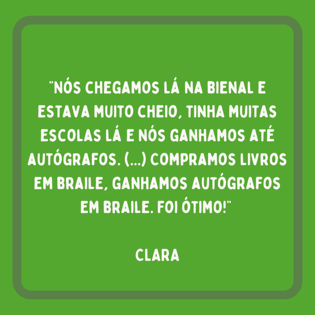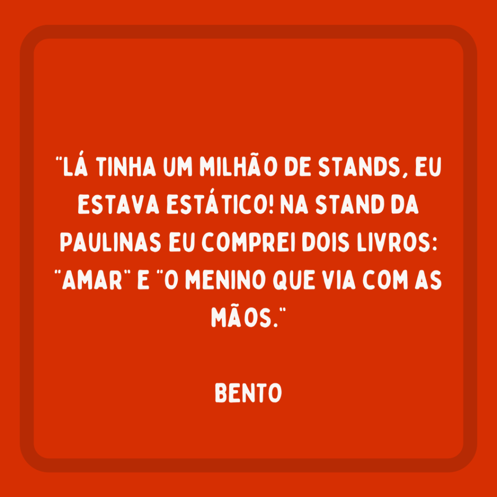 Nosso foco foi nos aproximarmos da proposta inédita deste ano de um espaço vivencial de leitura inclusiva. Dentre os muitos eixos em que a feira se organizou, esta foi a primeira vez em que, com a curadoria da Biblioteca Estadual de Minas Gerais, grupos editoriais como a Editora Paulinas fomentaram a discussão da acessibilidade e difusão da cultura para todos e todas, considerando suas especificidades.